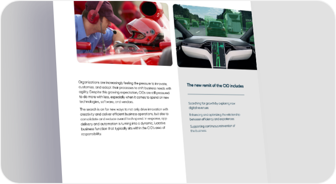 Organizations are increasingly feeling the pressure to innovate, The new remit of the CIO includes customize, and adapt their processes to shift business needs with agility. Despite this growing expectation, CIOs are still pressured to do more with less, especially when it comes to spend on new technologies, software, and vendors. Searching for growth by exploring new The search is on for new ways to not only drive innovation with digital revenues creativity and deliver efficient business operations, but also to Enhancing and optimizing the relationship consolidate and reduce overall tech spend. In response, app between efficiency and experiences delivery and automation is turning into a dynamic, lucrative business function that typically sits within the CIO’s area of Supporting continuous reinvention of responsibility. the business Intelligent automation and low code: Powering the modern enterprise | 4